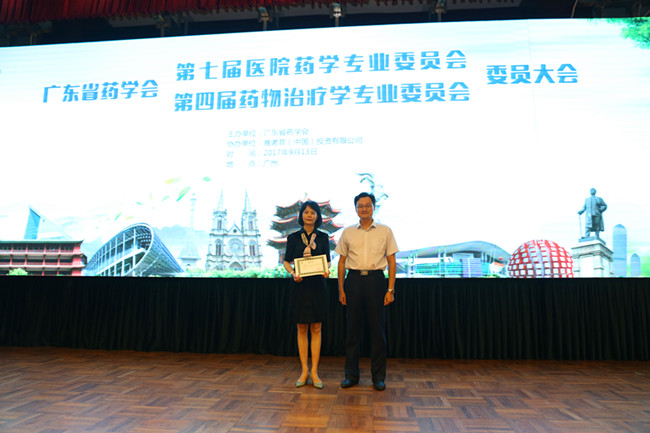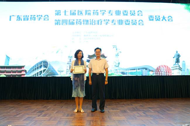 鄭志華秘書(shū)長(zhǎng)給第七屆醫(yī)院藥學(xué)專(zhuān)業(yè)委員會(huì)主任委員楊敏頒發(fā)聘書(shū)