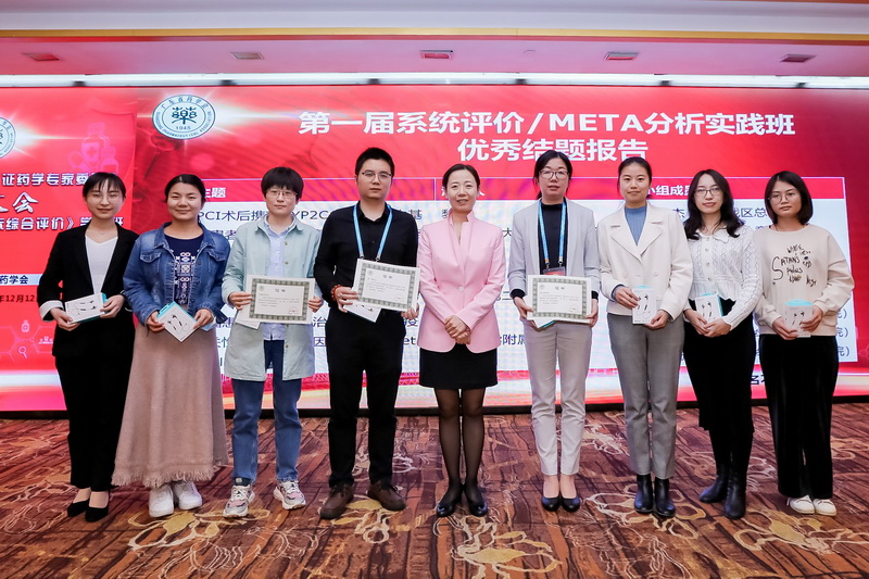 同時本次會議還安排了第一屆系統(tǒng)評價/META分析實踐班成果匯報暨結(jié)業(yè)典禮,學(xué)員分享了3個優(yōu)秀結(jié)題報告:PCI術(shù)后攜帶CYP2C19功能缺失基因患者服用高劑量氯吡格雷VS替格瑞洛的有效率和安全性meta分析、DPP-4抑制劑對頸動脈內(nèi)膜中層厚度影響的meta分析、腫瘤患者接受免疫治療后發(fā)生免疫相關(guān)性肺炎的危險因素分析。