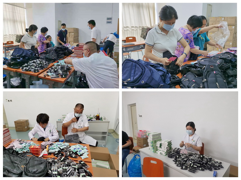 沒上一線的藥師也在積極為抗擊疫情做著力所能及的工作。由于深圳近期氣溫高、暴雨頻密,天氣濕熱,他們特意準(zhǔn)備了1000份“防暑降溫愛心包”,送給“前線”醫(yī)務(wù)人員。