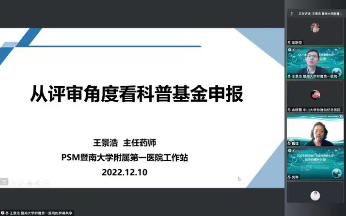 暨南大學(xué)附屬第一醫(yī)院主任藥師王景浩《從評審角度談如何申報(bào)PSM廣東科普基金》