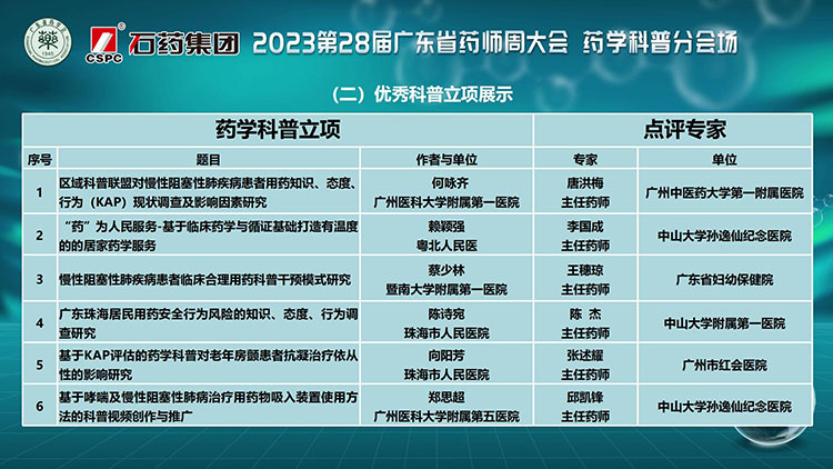 1、藥健康進(jìn)萬家—科普宣教能力人才培養(yǎng)廣東省選拔賽獲獎(jiǎng)名單