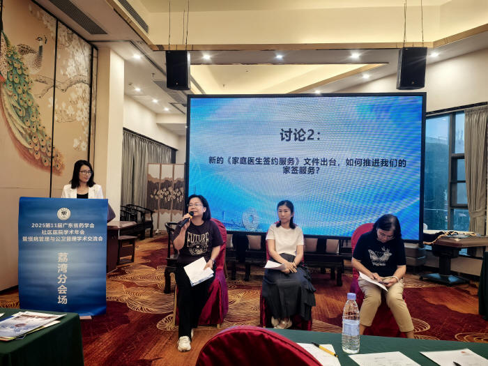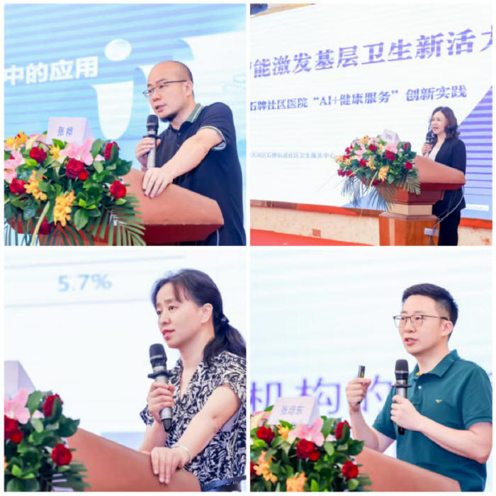 4、主會(huì)場(chǎng)還安排了4個(gè)專(zhuān)題報(bào)告。成都市武侯區(qū)簇錦社區(qū)衛(wèi)生服務(wù)中心楊梅主任分享《探索醫(yī)防融合新模式,全科疫苗處方助力社區(qū)健康管理》;天河區(qū)石牌街社區(qū)衛(wèi)生服務(wù)中心范育玲主任以《人工智能激發(fā)基層衛(wèi)生新活力》為題進(jìn)行演講;南方醫(yī)科大學(xué)珠江醫(yī)院的張樺主任和張培東教授,分別就《淺析指南共識(shí)引領(lǐng)GLP - 1RA在臨床中的應(yīng)用》和《中國(guó)血脂管理指南(基層版)》進(jìn)行解讀。這些報(bào)告聚焦基層醫(yī)療前沿與實(shí)際需求,為參會(huì)者帶來(lái)一場(chǎng)知識(shí)盛宴。在討論環(huán)節(jié),馬興標(biāo)、江俊生、林天海、范穗光、李皓、黃健忠、符曉冰等主任圍繞“如何高效提升社區(qū)醫(yī)療服務(wù)能力”展開(kāi)討論,各抒己見(jiàn),為社區(qū)醫(yī)療發(fā)展出謀劃策。