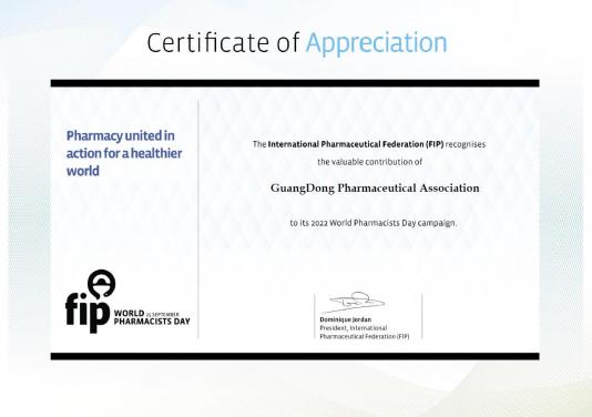 國際藥學(xué)聯(lián)合會(FIP)授予廣東省藥學(xué)會以及鄭志華、李亦蕾“9?25世界藥師節(jié)”推廣貢獻(xiàn)獎(jiǎng)