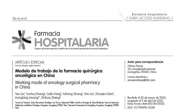 廣東省藥學(xué)會(huì)關(guān)于“外科藥學(xué)”的專論約稿在西班牙Farmacia Hospitalaria(《醫(yī)院藥學(xué)