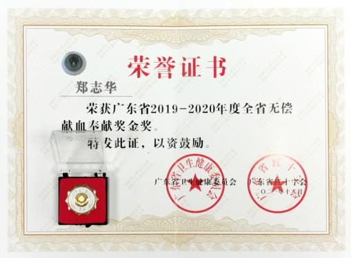 熱血獻(xiàn)他人、廿年不間斷--廣東省藥學(xué)會(huì)副理事長(zhǎng)兼秘書(shū)長(zhǎng)鄭志華被授予全省無(wú)償獻(xiàn)血奉獻(xiàn)獎(jiǎng)金獎(jiǎng)